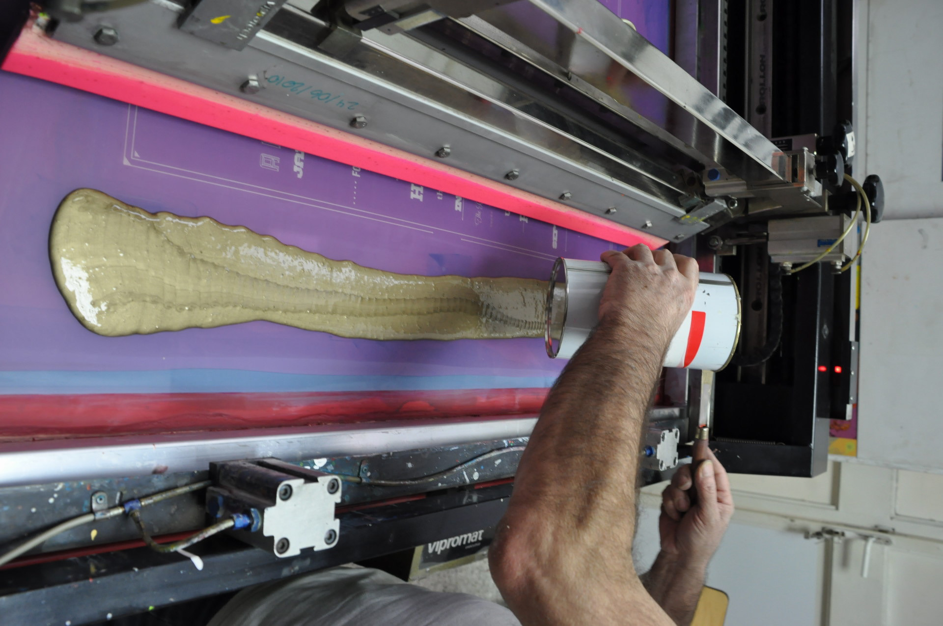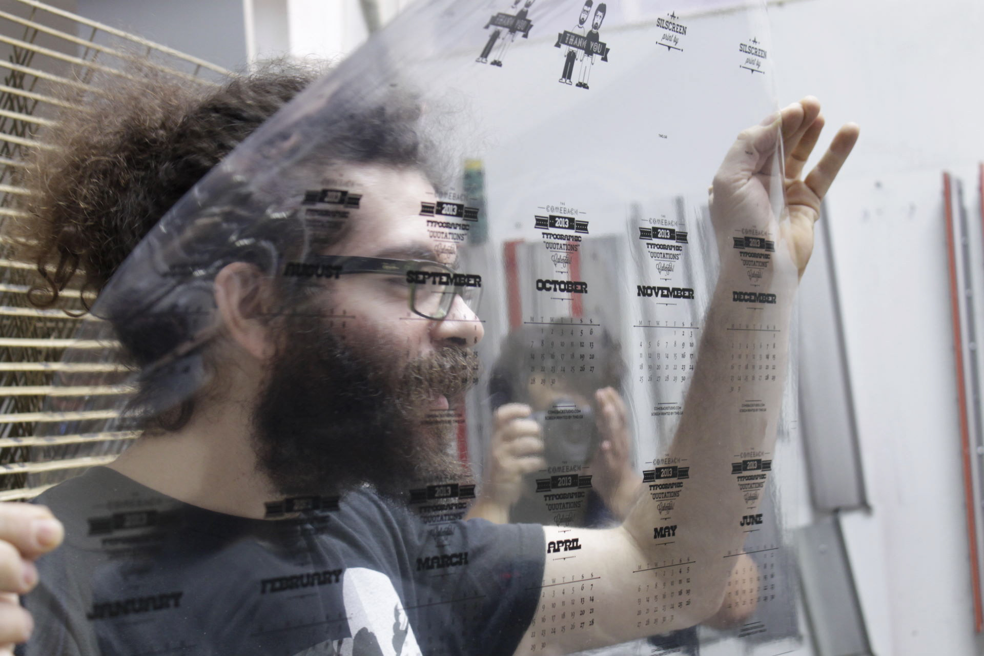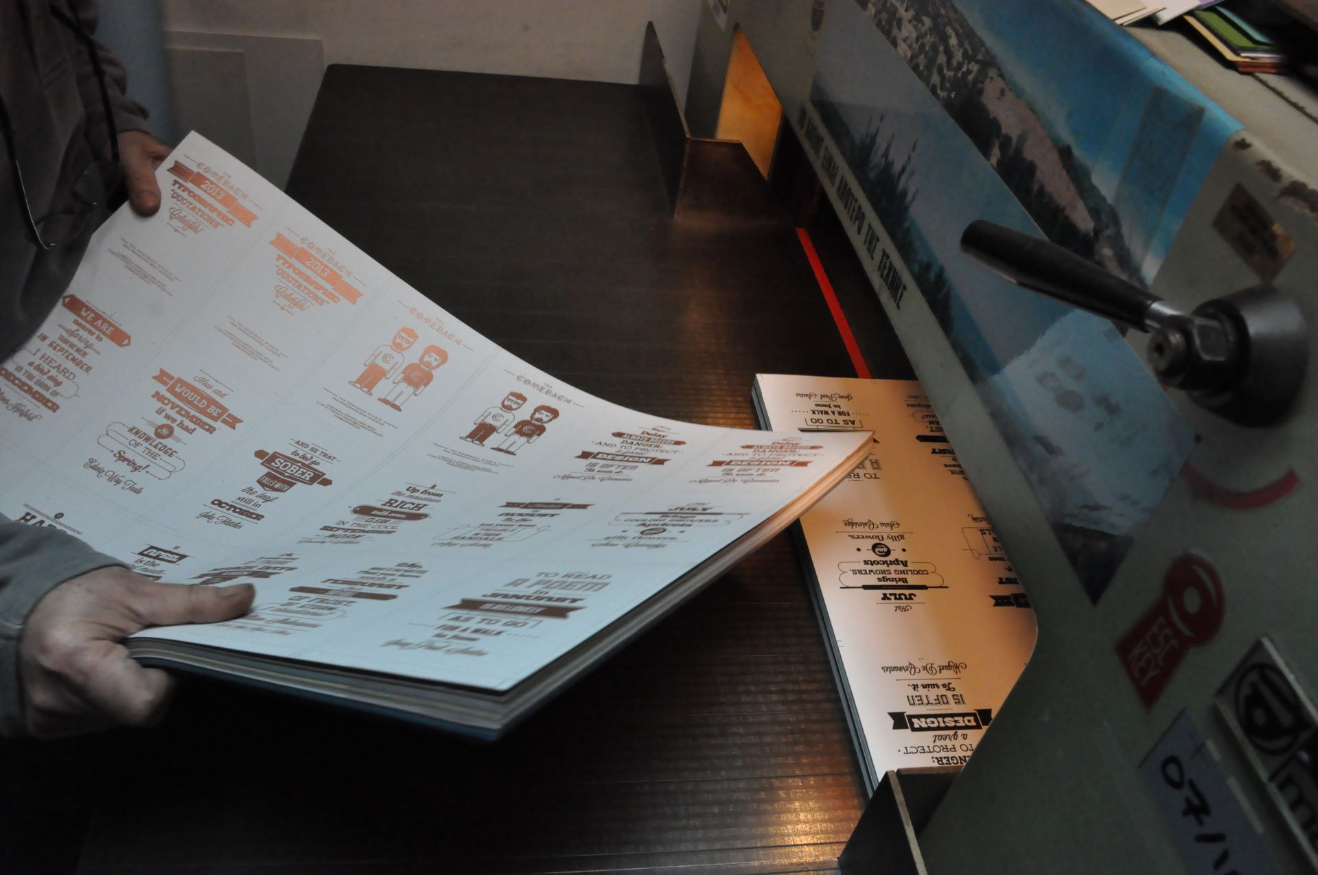 We choose silkscreen wanting this to last as much as possible and got carried aways with colors. There are mainly two colors (black and silver blue ink) and many color & paper versions to chose from*.