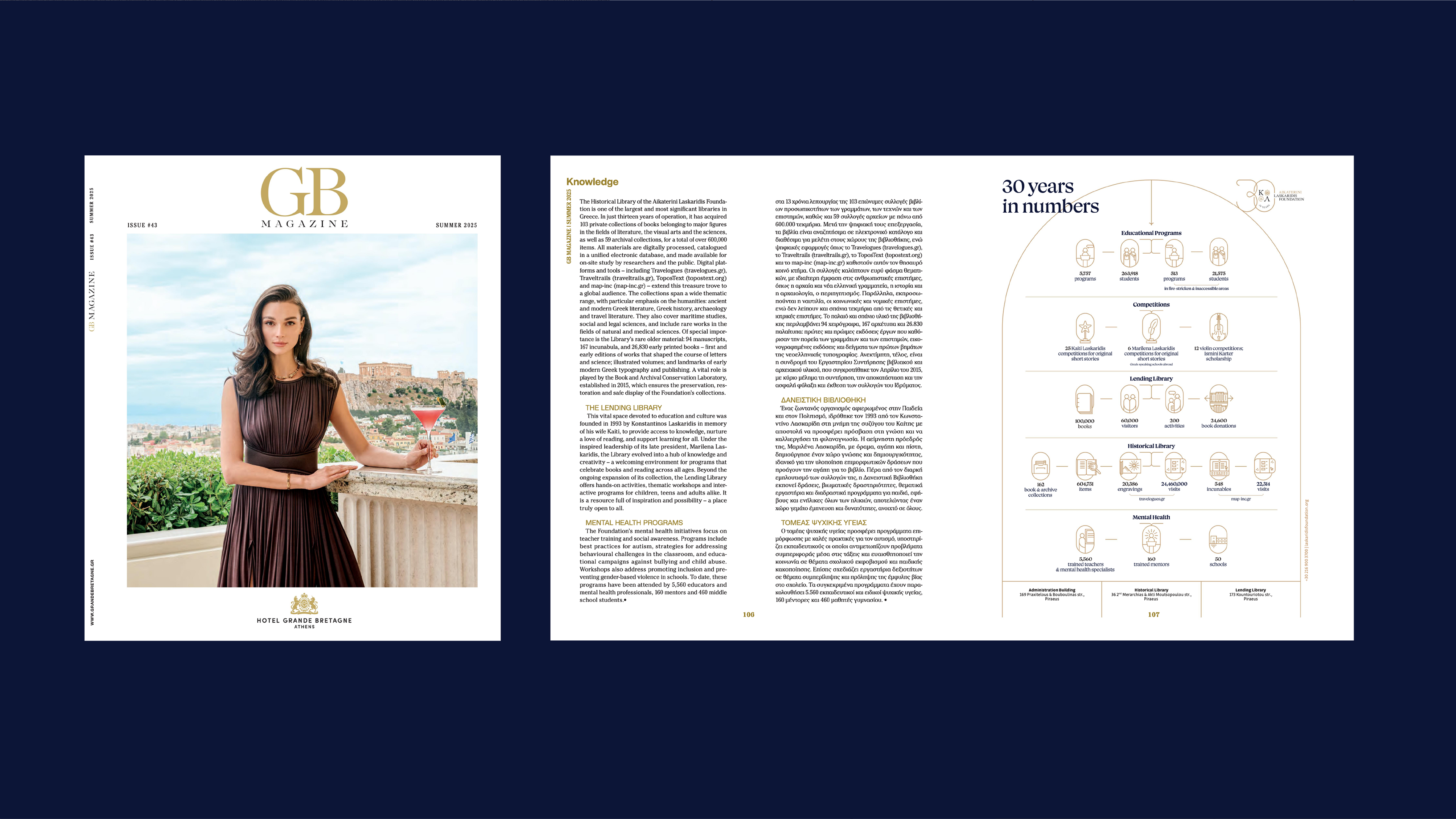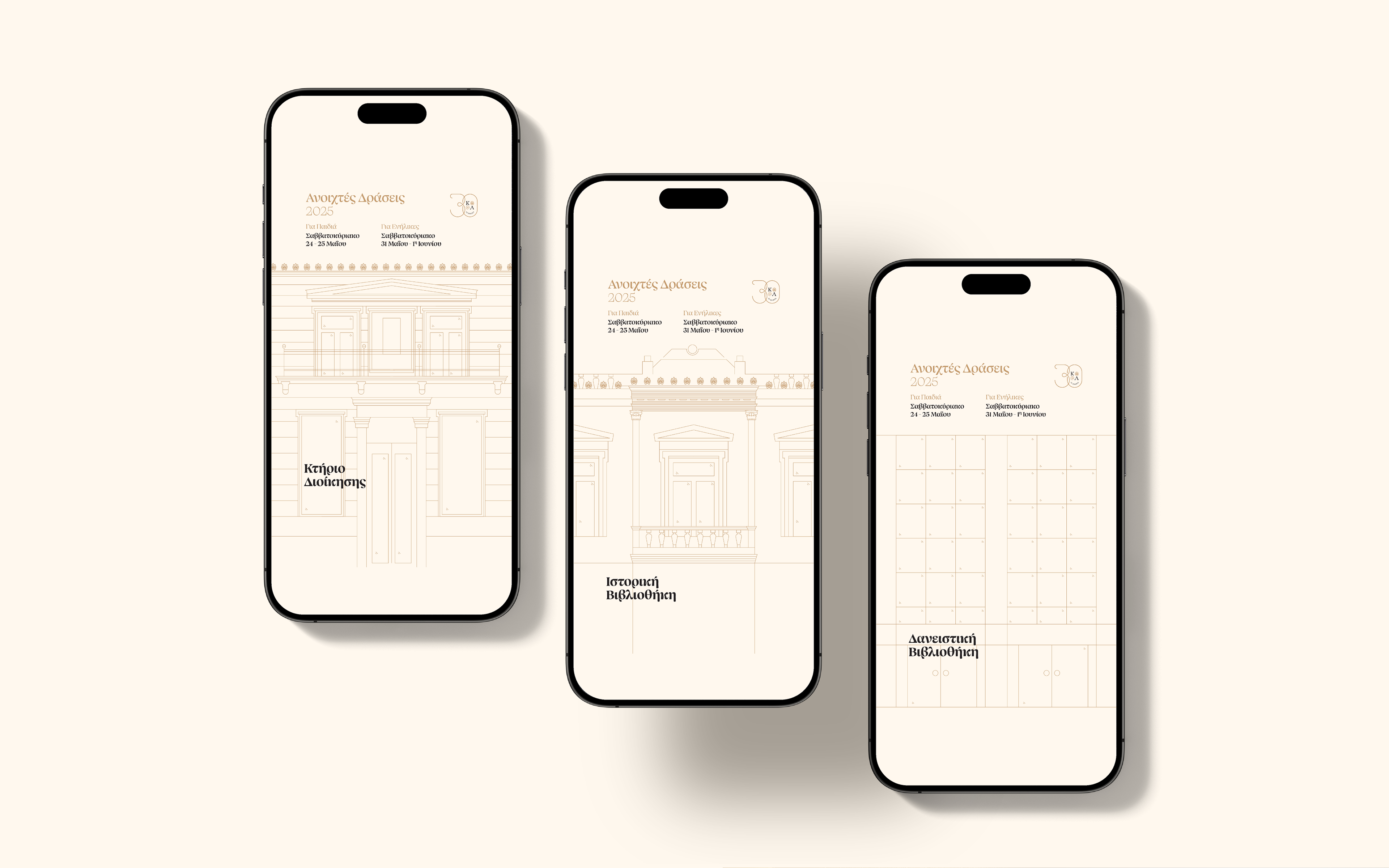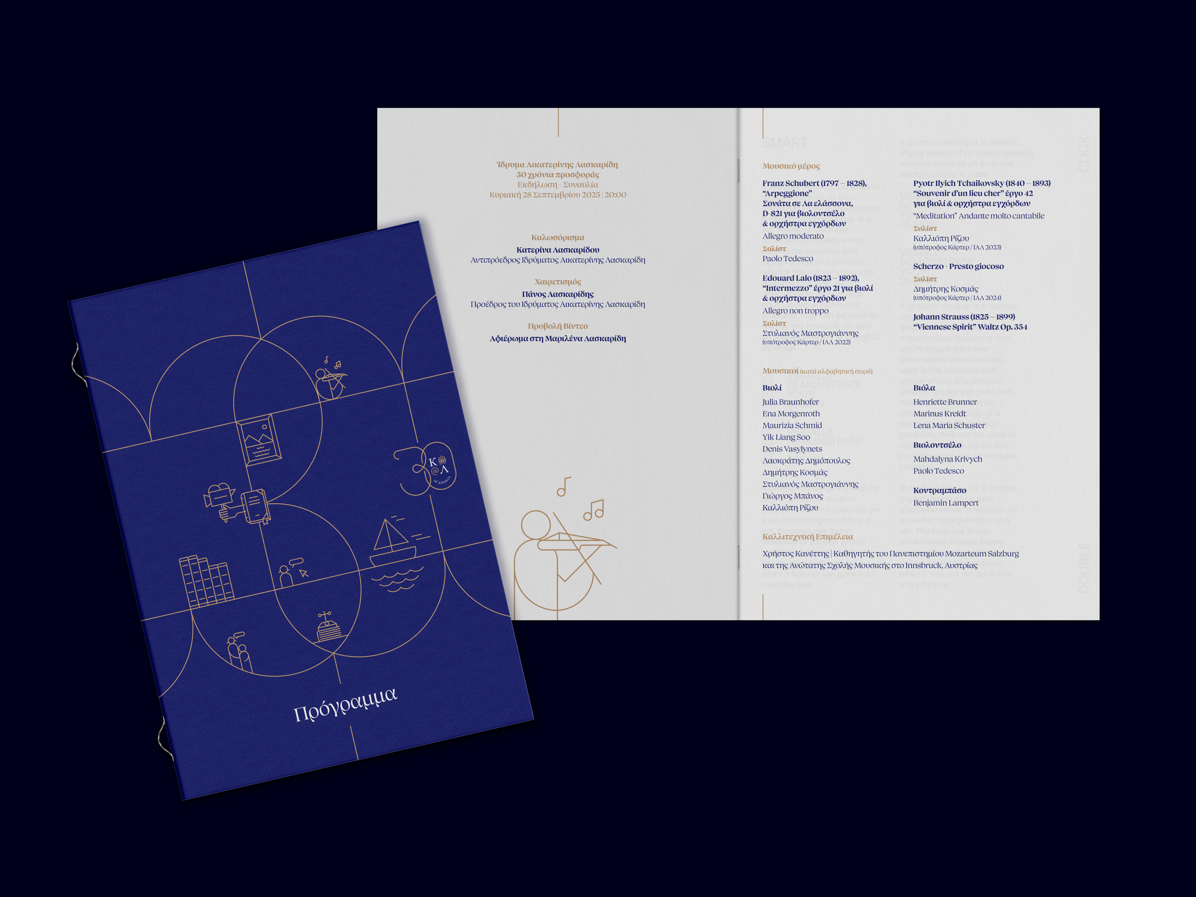 To celebrate the 30th anniversary of the Aikaterini Laskaridis Foundation, a comprehensive commemorative visual identity was developed. This included the design of a special anniversary logotype for 2025, which accompanies all communication materials for the Foundation’s celebratory activities, as well as a wide range of both print and digital applications. Beyond the anniversary logo, printed materials were created for the needs of the Historical Library, along with an extensive series of icons covering all departments of the Foundation. In addition, numerous visual applications were produced for two major events: