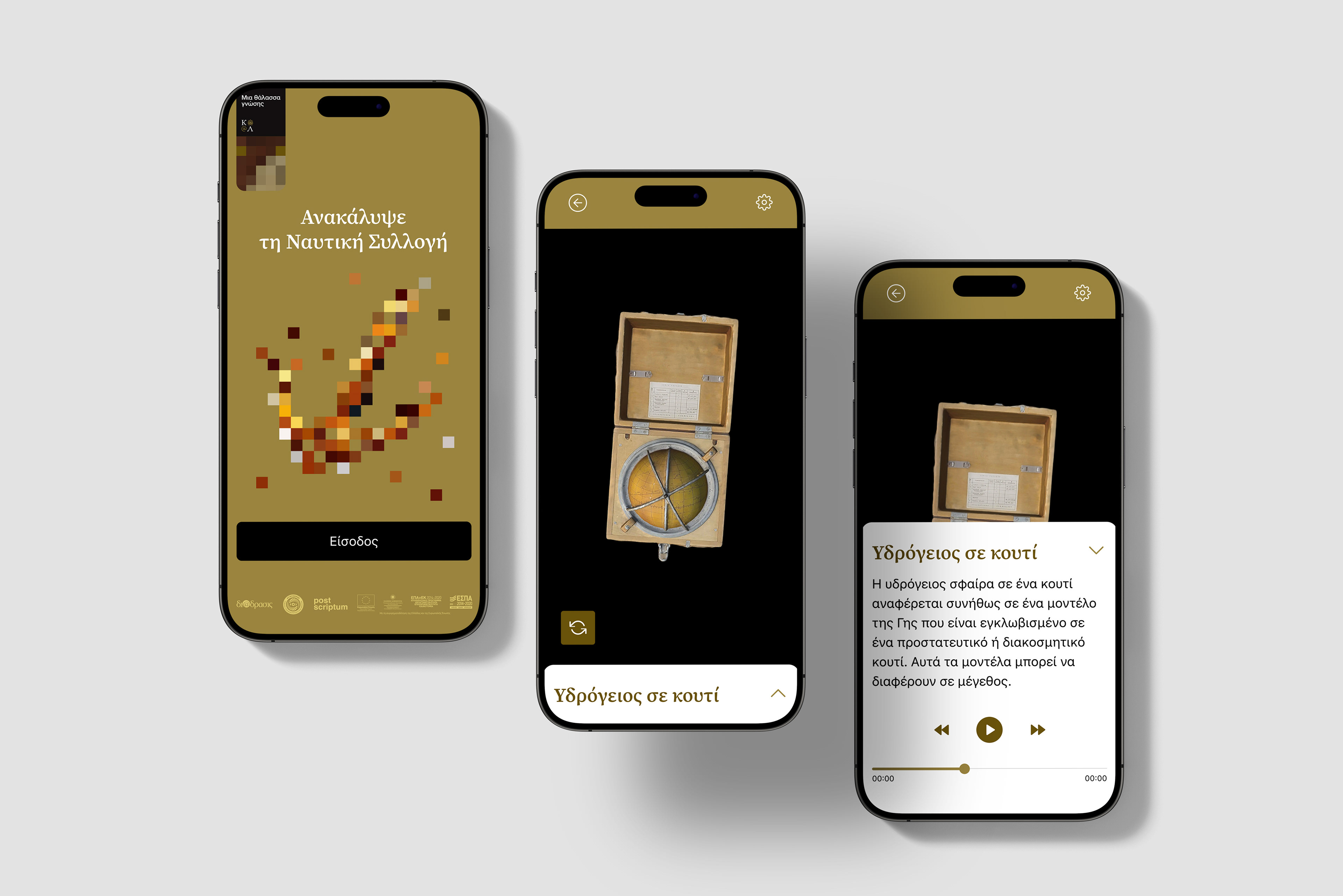 This application enables users to discover in an interactive way selected objects from the maritime collection of the President of the Aikaterini Laskaridis Foundation, Panagiotis C. Laskaridis. The collection was built up from the mid-1980s onwards, and today it is one of the most important in Greece. The collection counts more than 300 objects, including a number of rare scrimshaws (carved bones and teeth of whales or other mammals). The objects are presented in the app in 3D, but only after users scan the appropriate codes that are anything but foreshadowing what they will see. The drawings of nautical objects are deconstructed in pixels, in order to hide their actual form and arouse the user's curiosity. When scanned with a mobile phone, the objects are revealed vividly on the screen, creating an interesting augmented reality experience. As the objects appear, the user can explore rich information about their history, function and significance, while audio clips complement the experience, providing another dimension of interaction, creating a sense that the user is participating in a live narrative that takes them into the world of maritime lore.