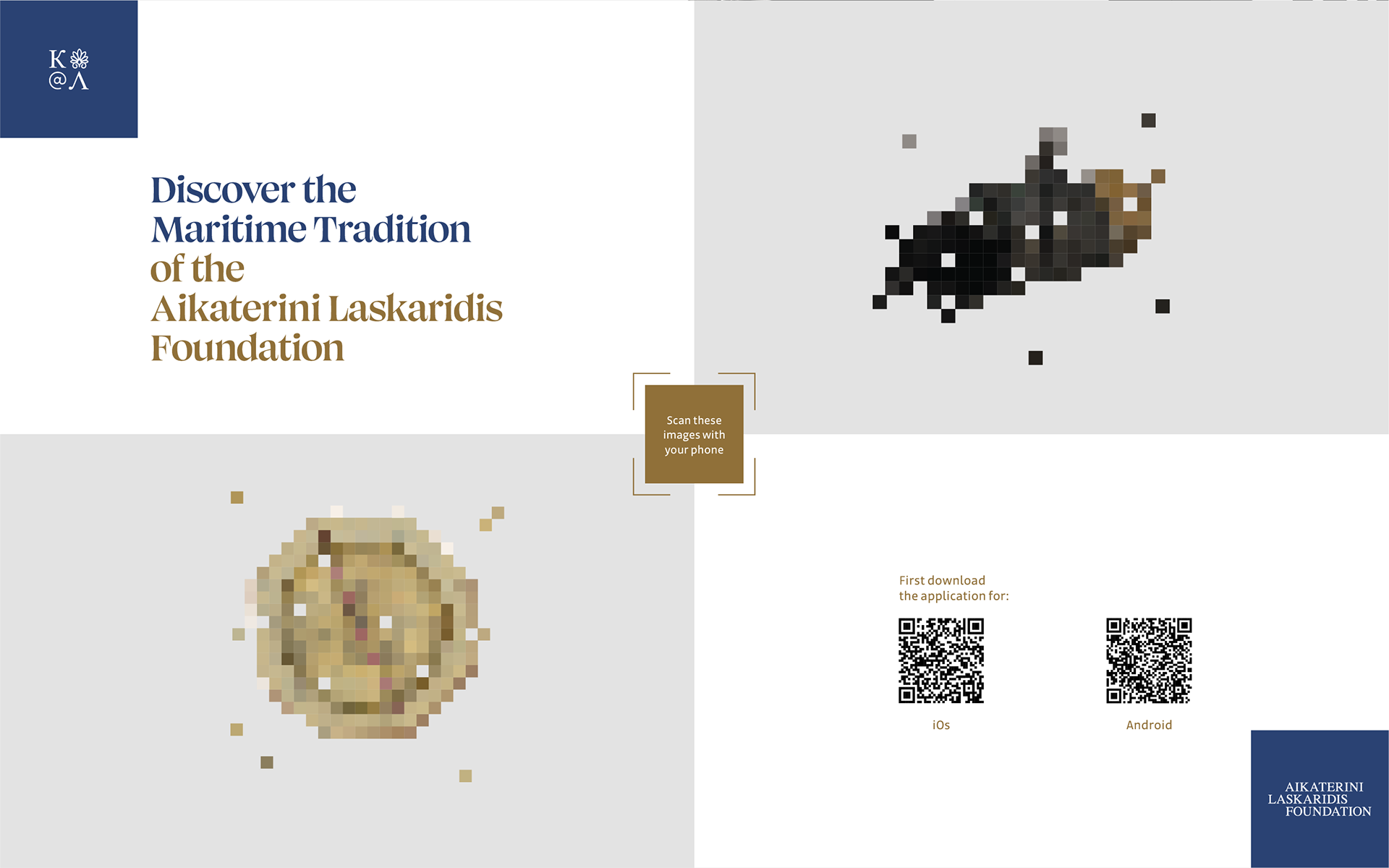 Η συγκεκριμένη εφαρμογή δίνει τη δυνατότητα στους χρήστες να ανακαλύψουν με τρόπο διαδραστικό επιλεγμένα αντικείμενα από τη ναυτική συλλογή του προέδρου του Ιδρύματος Αικατερίνης Λασκαρίδη, Παναγιώτη Κ. Λασκαρίδη. Η συλλογή συγκροτήθηκε από τα μέσα της δεκαετίας του 1980 και ύστερα, και σήμερα αποτελεί μία από τις σημαντικότερες στην Ελλάδα. Η συλλογή μετρά περισσότερα από 300 αντικείμενα, μεταξύ των οποίων πλήθος σπάνιων scrimshaws (φιλοτεχνημένα οστά και δόντια φαλαινών ή άλλων θηλαστικών). Τα αντικείμενα παρουσιάζονται στην εφαρμογή τρισδιάστατα, αλλά μόνο αφού οι χρήστες σκανάρουν τους κατάλληλους κωδικούς που κάθε άλλο παρά τους προϊδεάζουν για όσα θα δουν. Τα σχέδια των ναυτικών αντικειμένων είναι αποδομημένα σε εικονοκύτταρα (pixels), με σκοπό να κρύβουν την πραγματική τους μορφή και να προκαλούν την περιέργεια του χρήστη. Όταν σκανάρονται με το κινητό, τα αντικείμενα αποκαλύπτονται ζωντανά στην οθόνη, δημιουργώντας μια ενδιαφέρουσα εμπειρία επαυξημένης πραγματικότητας. Καθώς τα αντικείμενα εμφανίζονται, ο χρήστης μπορεί να εξερευνήσει πλούσιες πληροφορίες σχετικά με την ιστορία, τη λειτουργία και τη σημασία τους, ενώ ηχητικά αποσπάσματα συμπληρώνουν την εμπειρία, προσφέροντας μία ακόμα διάσταση αλληλεπίδρασης, δημιουργώντας μια αίσθηση ότι ο χρήστης συμμετέχει σε μια ζωντανή αφήγηση που τον ταξιδεύει στον κόσμο της ναυτικής παράδοσης.