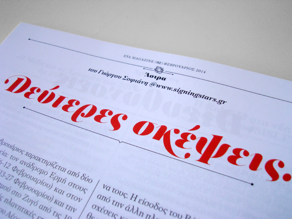Second issue for Eva for Eva magazine. The magazine is a supplement to Chrisi Eukairia, a newspaper that is the leader in the classifieds media in Greece. At every issue, the role of Eva goes to a non-model, a "real" woman. So this is Elena. Take a look at the first issue here.