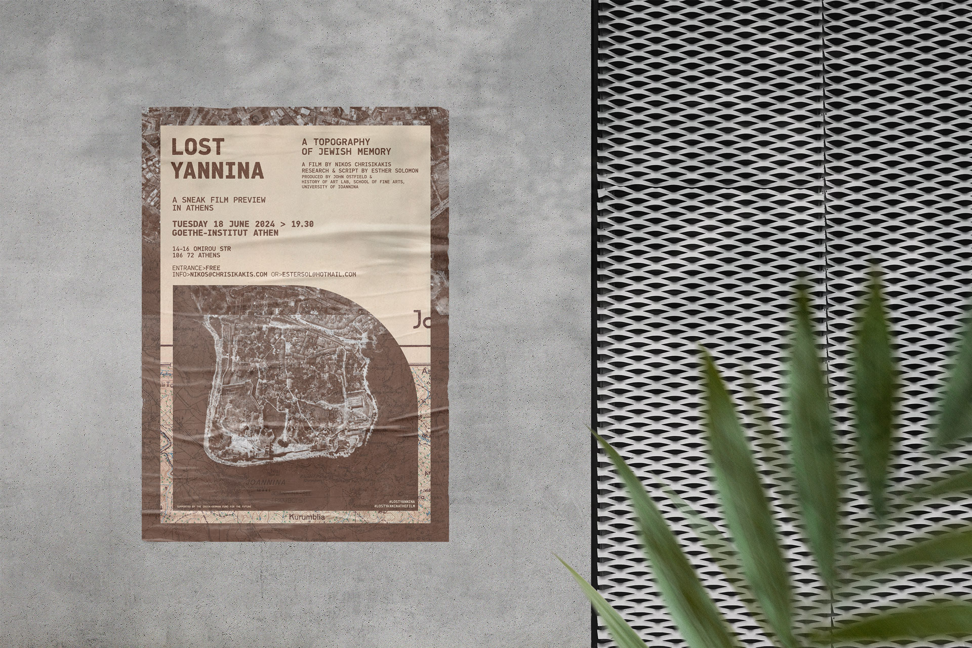 Τα βασικά στοιχεία για τον σχεδιασμό της αφίσας προήρθαν από την πρωτογενή έρευνα (15 ετών, 2009 - 2024) και βασίζονται σε 2 ευρήματα. Έναν χάρτη σχεδιασμένο το 1940 και μια αεροφωτογραφία της Λουφτβάφε του επόμενου έτους. Στοιχεία που χρησιμοποιήθηκαν αργότερα, τον Μάρτιο του 1944 από τους Ναζί κατακτητές με στόχο την εξόντωση του (τελικά) 95% των Εβραίων Ρωμανιωτών των Ιωαννίνων. Το ντοκιμαντέρ περιγράφει και στηρίζεται σε μαρτυρίες με βάση την τοπογραφία του κάστρου των Ιωάννινων.