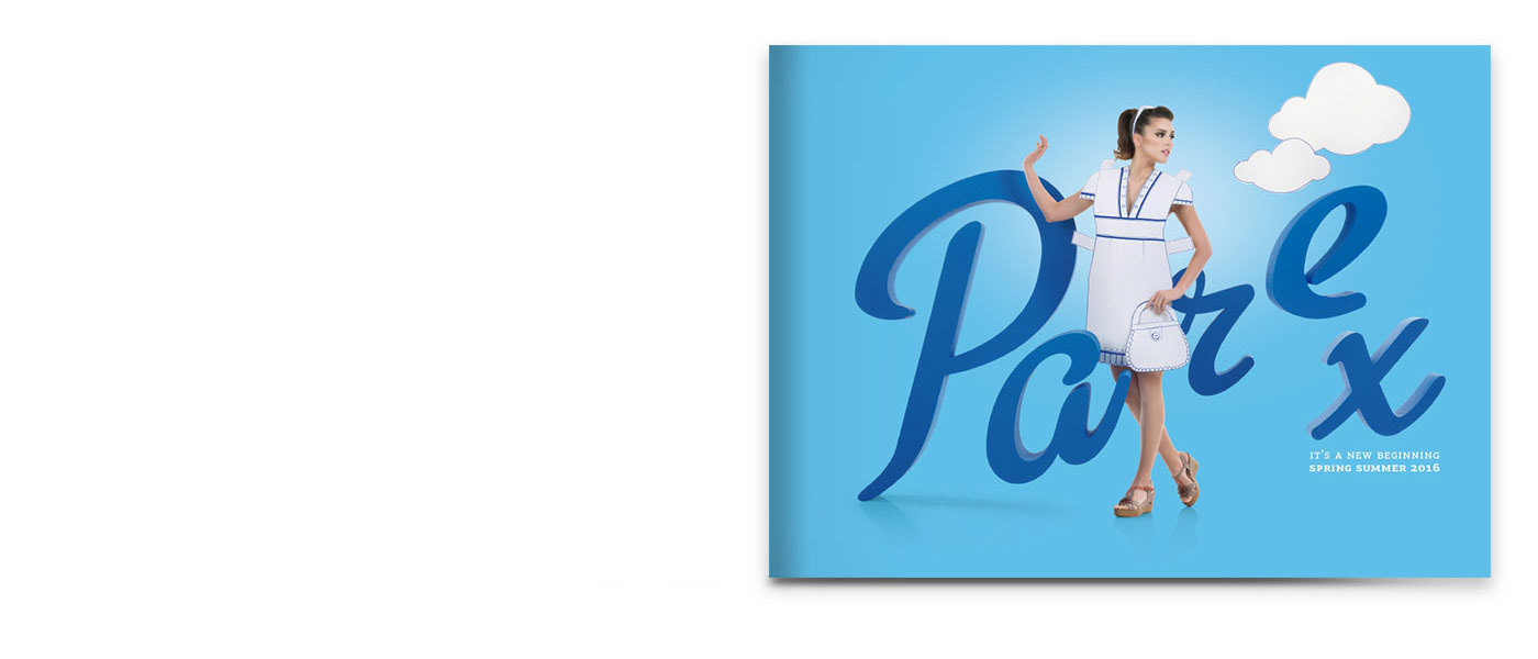 Parex Shoes, Spring Summer 2016. This year's concept included big typography taken from the brand new logo we also designed, and paper handmade clothes. All photos used at the new catalogue, magazine ads and presentations, social media campaigns, and include the new line for women's shoes.